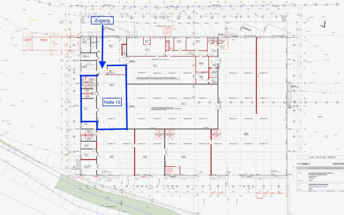 Halle/Werkstatt, Büro, Sozialräume, insgesamt ca. 355 m2 Nutzfläche, Raumhöhe ca. 4,20 m UKB,