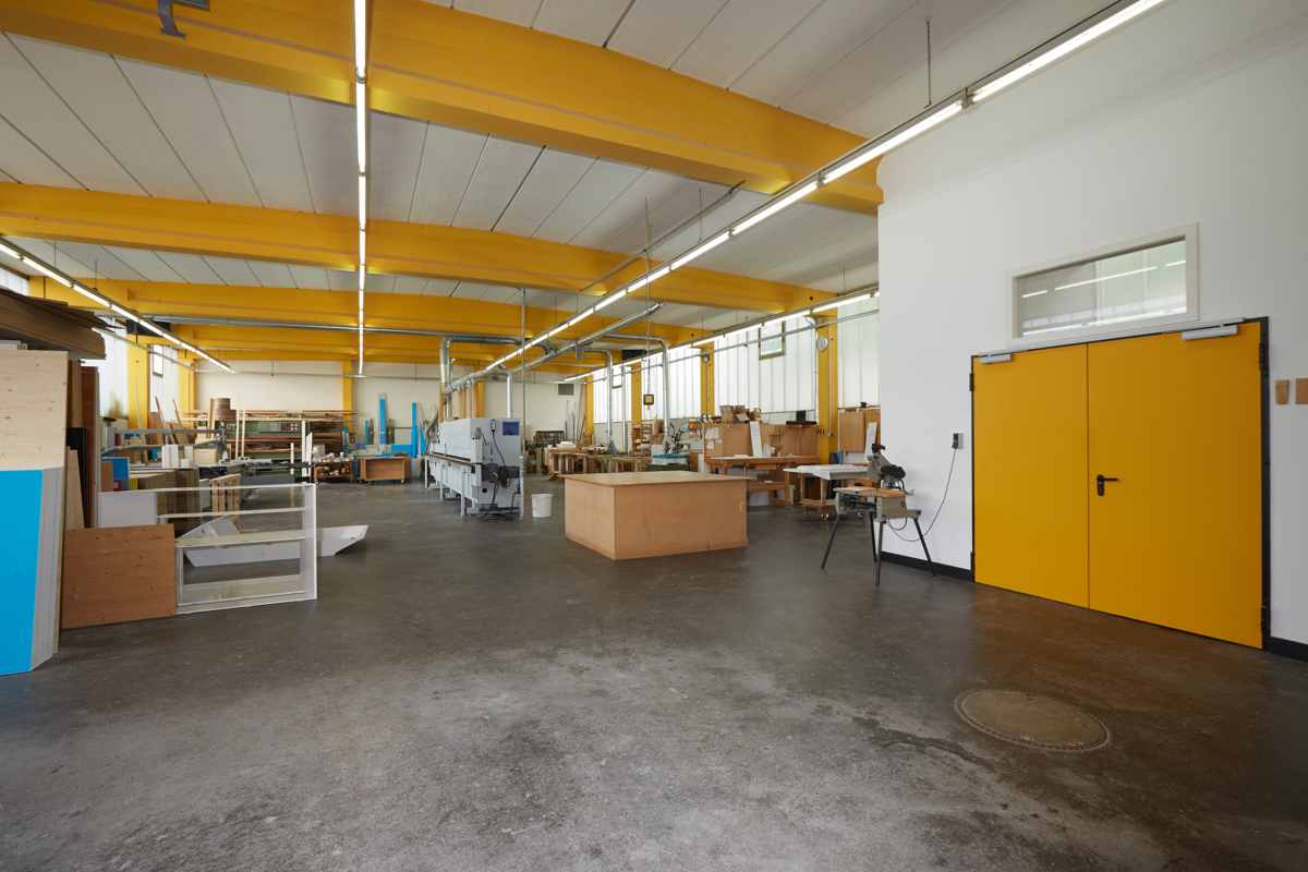 Die großzügige Gewerbeeinheit wird derzeit als professioneller Schreinereibetrieb genutzt.