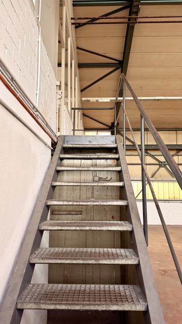 Abschnitt 1: ca. 380 m2., seitlich Meisterbüro, einfache Büro- und Sozialräume auf 2 Ebenen ca. 30 m2;