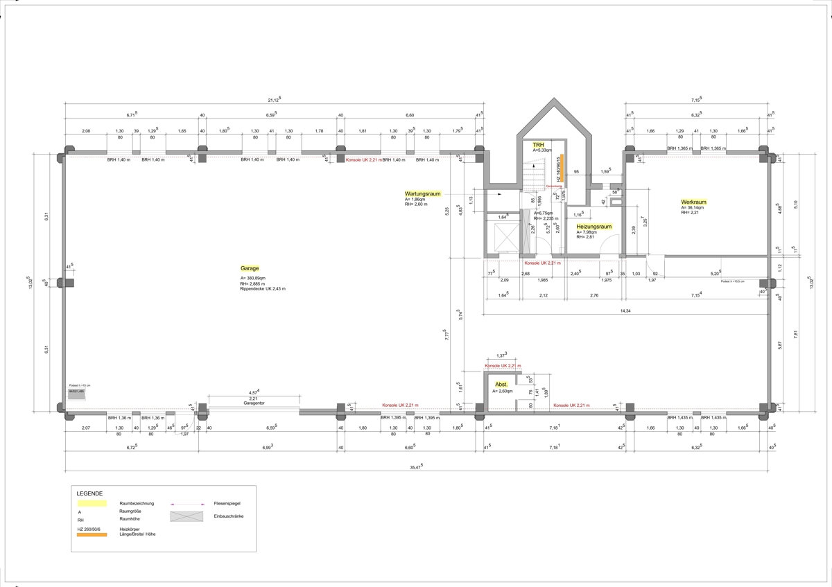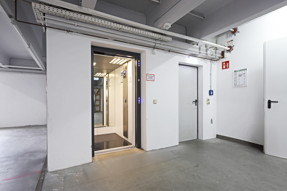 Eine Lagerfläche (ca. 108 m²) befindet sich im hinteren Bereich der Tiefgaragenfläche. Diese Lagerfläche ist beheizt.