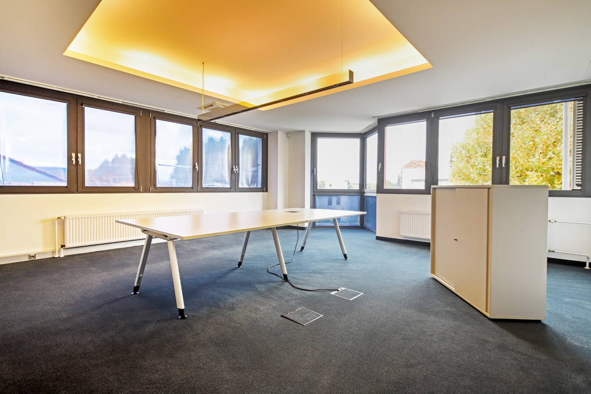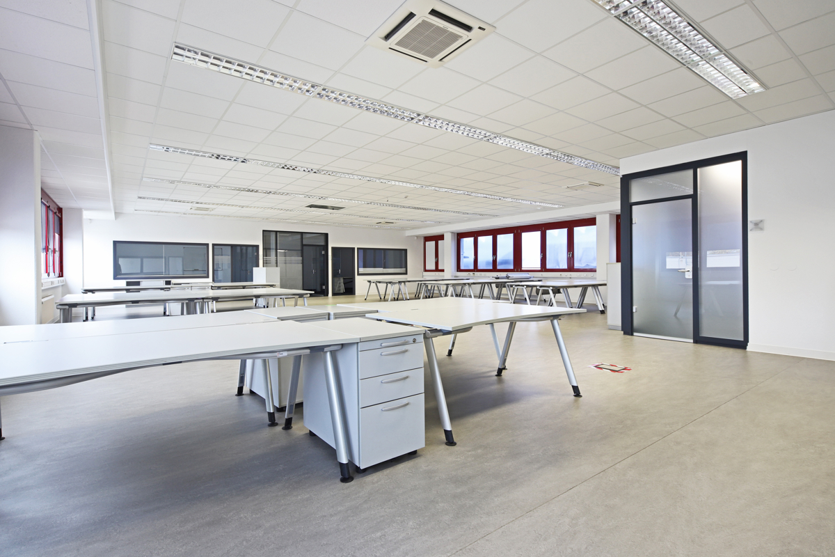 ca. 88 m² Mehrzweckraum und drei weitere Büro- und Besprechungsräume. In diesem Bereich liegen antistatische Kunststoffböden.