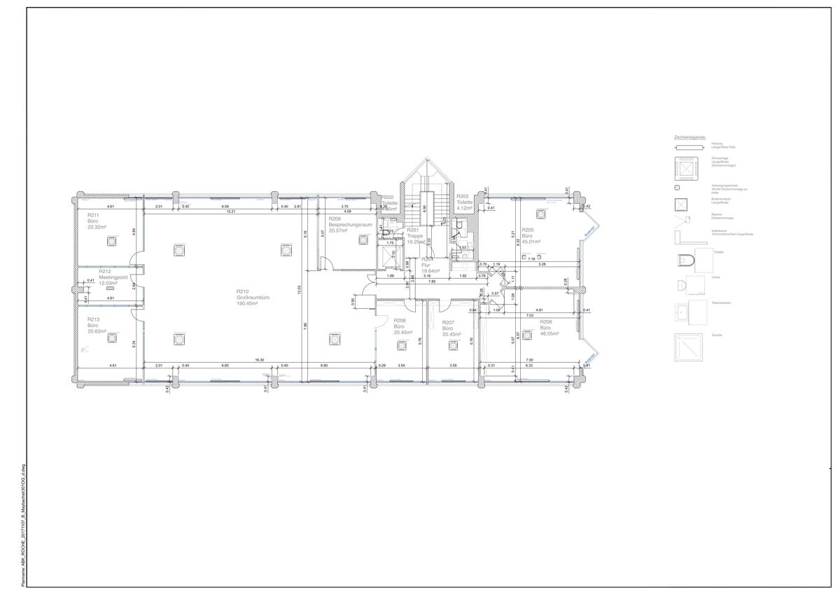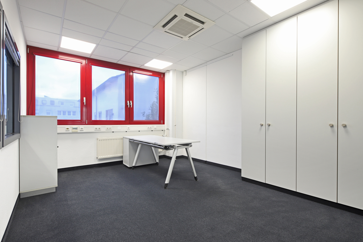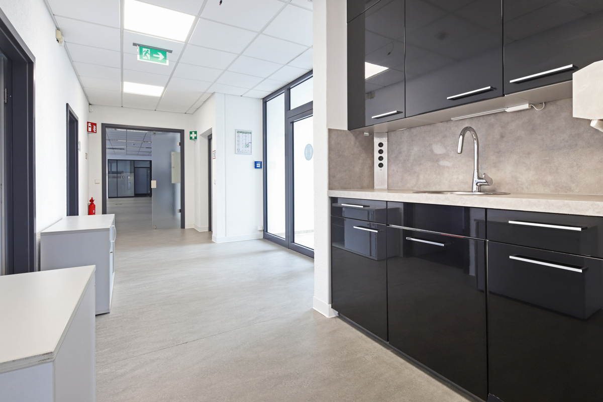 ca. 190 m² für leichte Produktion, ca. 234 m² Bürobereich mit Flurbereich/Vorraum/Teeküche, vier Einzelbüros, gesamt Fläche einem Sanitärbereich mit WC separat sowie ein Großraumbüro und vier weitere Büro- und Besprechungsräume. In diesem Bereich liegen ebenfalls antistatische Kunststoffböden.