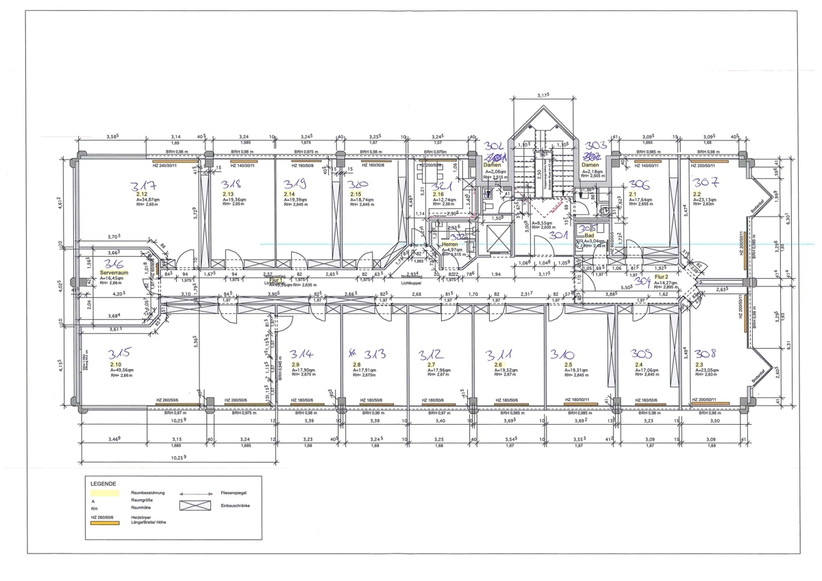 ca. 415 m² Bürobereich mit Flurbereich, 12 Büro- und Besprechungsräume, einem Sanitärbereich mit WC separat und Duschbad mit WC. Aufenthaltsraum mit Einbauküche und Serverraum.