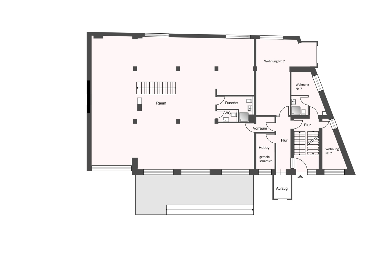 Eine rein gewerbliche Nutzung ist möglich. Nutzungsmöglichkeiten beispielsweise als Atelier, Büro oder Kindertagesstätte.