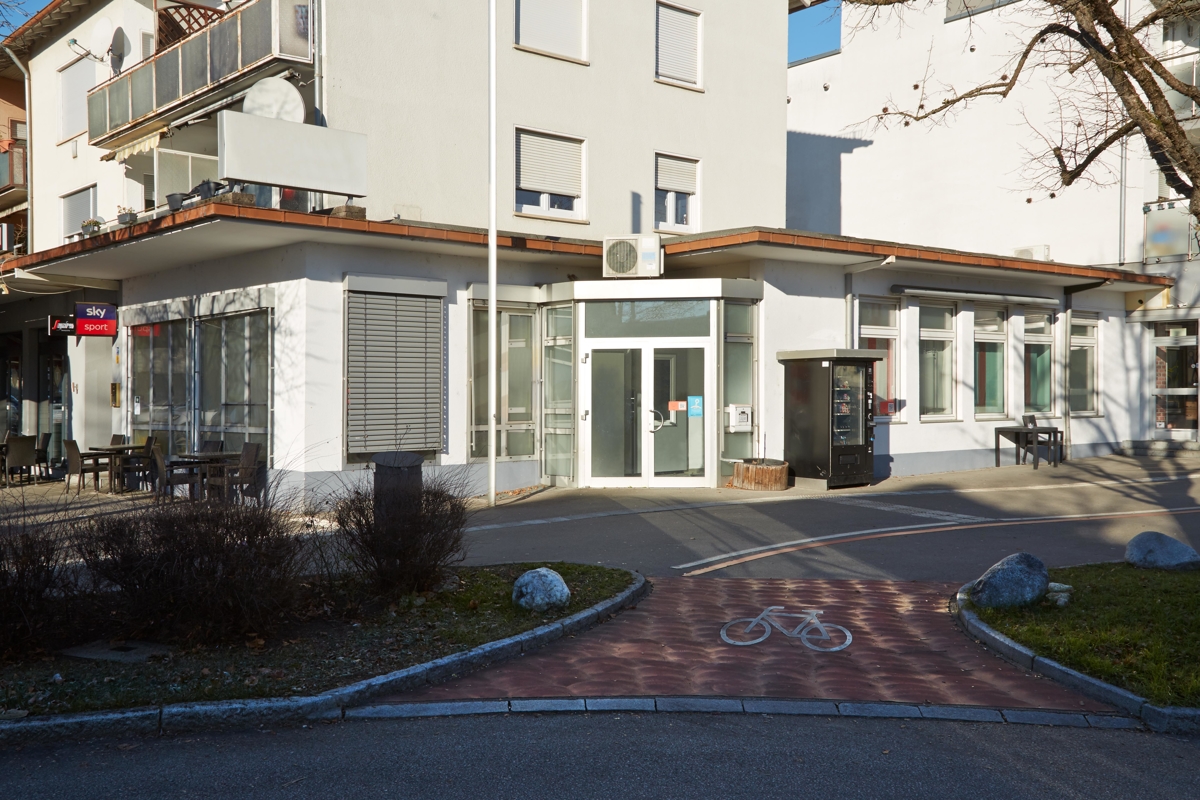 Öffentliche Parkplätze befinden sich vor dem Gebäude und in der Nachbarschaft.