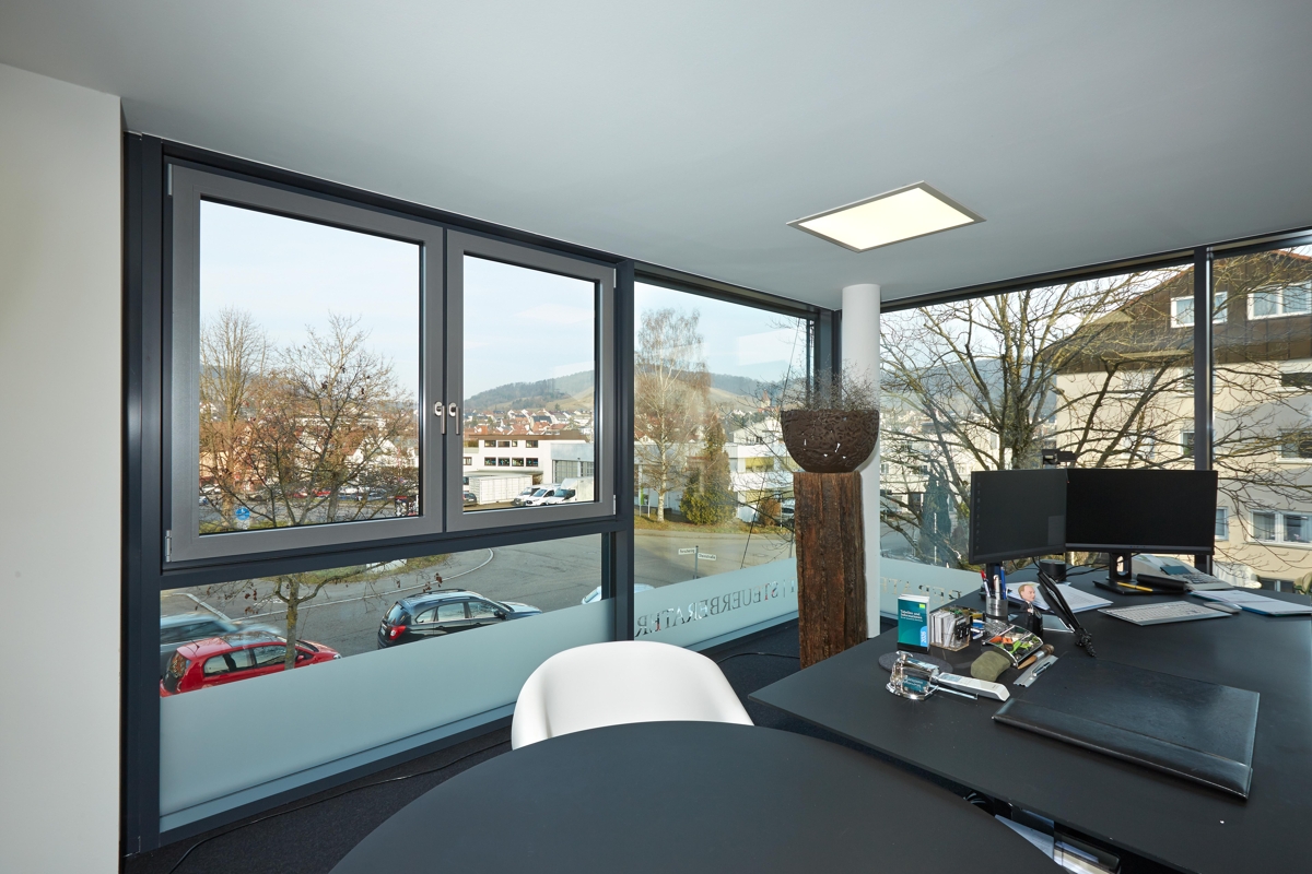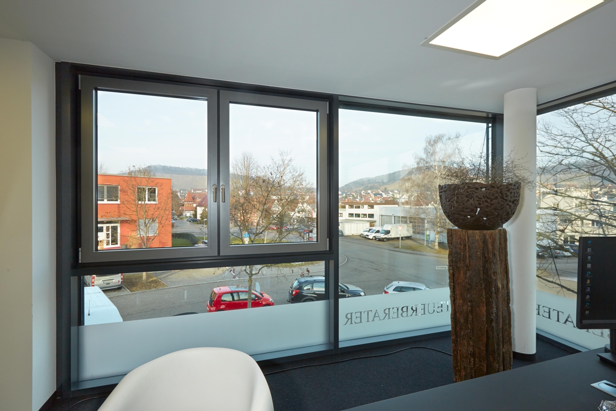 großteils bodentiefe Fenster, Aluminium dreifachverglast