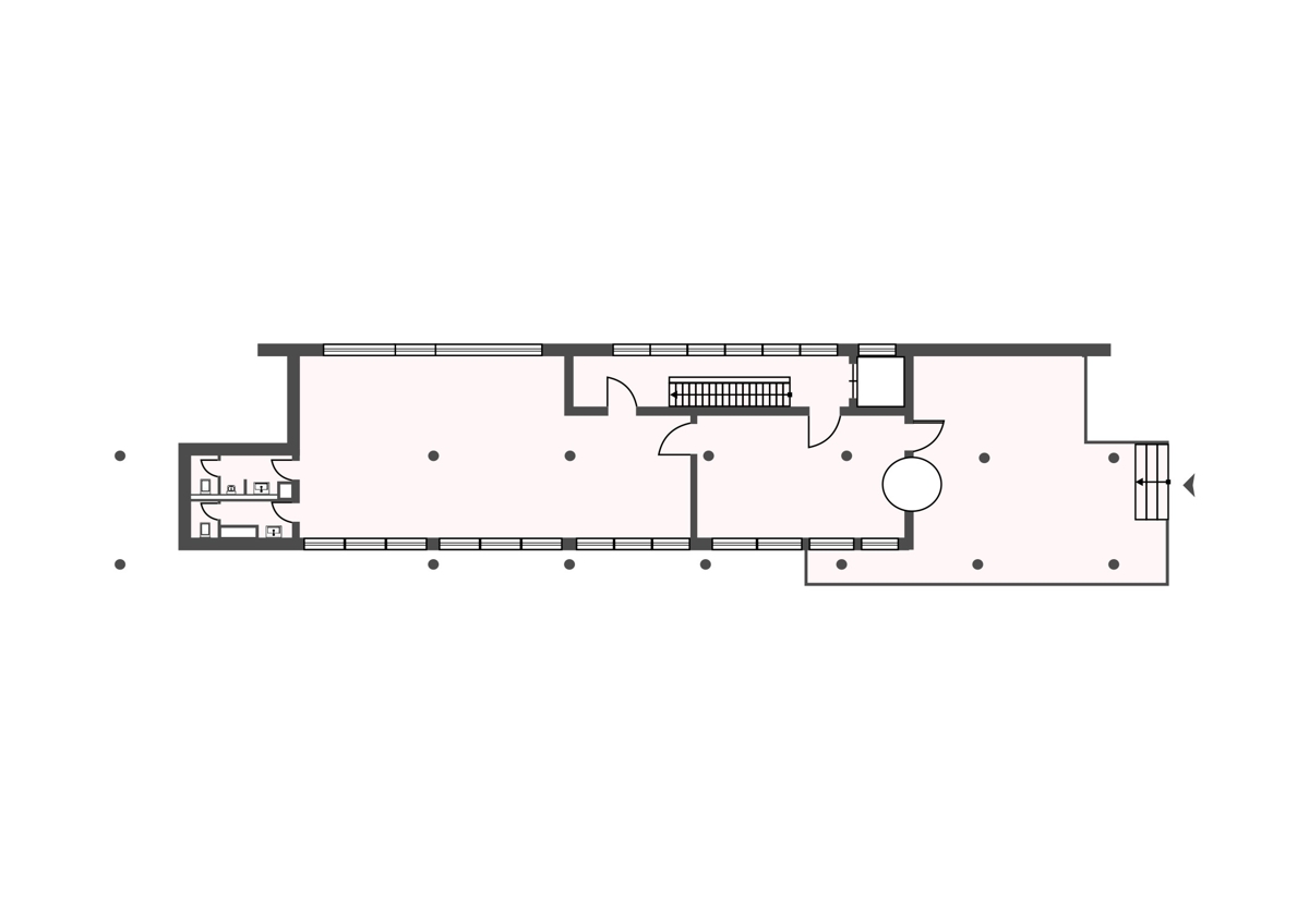 Im westlichen Teil des Gebäudes befindet sich das Treppenhaus mit Glasaufzug. Sämtliche Geschosse verfügen über Hohlraumböden für eine variable Installationsführung mit hochwertiger Textilbelägen. Der Grundriss ist frei von Querscheiben und bietet größtmögliche Flexibilität bei der Grundrissgestaltung. Die einzelnen Räume sind derzeit mit Glastrennwänden abgeteilt. Die Nasszellen sind voll gefliest und mit zeitloser WC-Einrichtung ausgestattet. Ebenso ist jedes Geschoss mit einer Teeküche ausgestattet.
