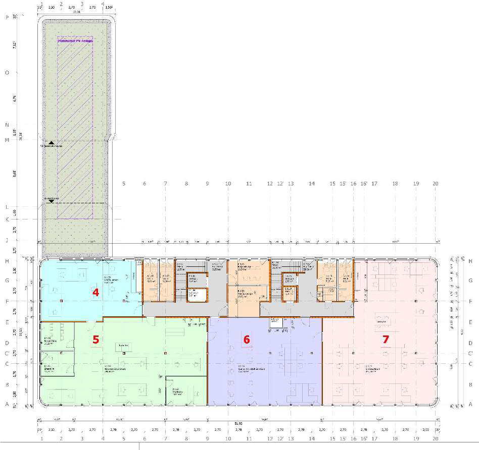 Teilfläche 5 gesamt ca. 232 m² (Büroraum ca. 185 m², Einzelbüro ca. 13 m², Einzelbüro ca. 19 m², Besprechungsraum ca. 15 m²).