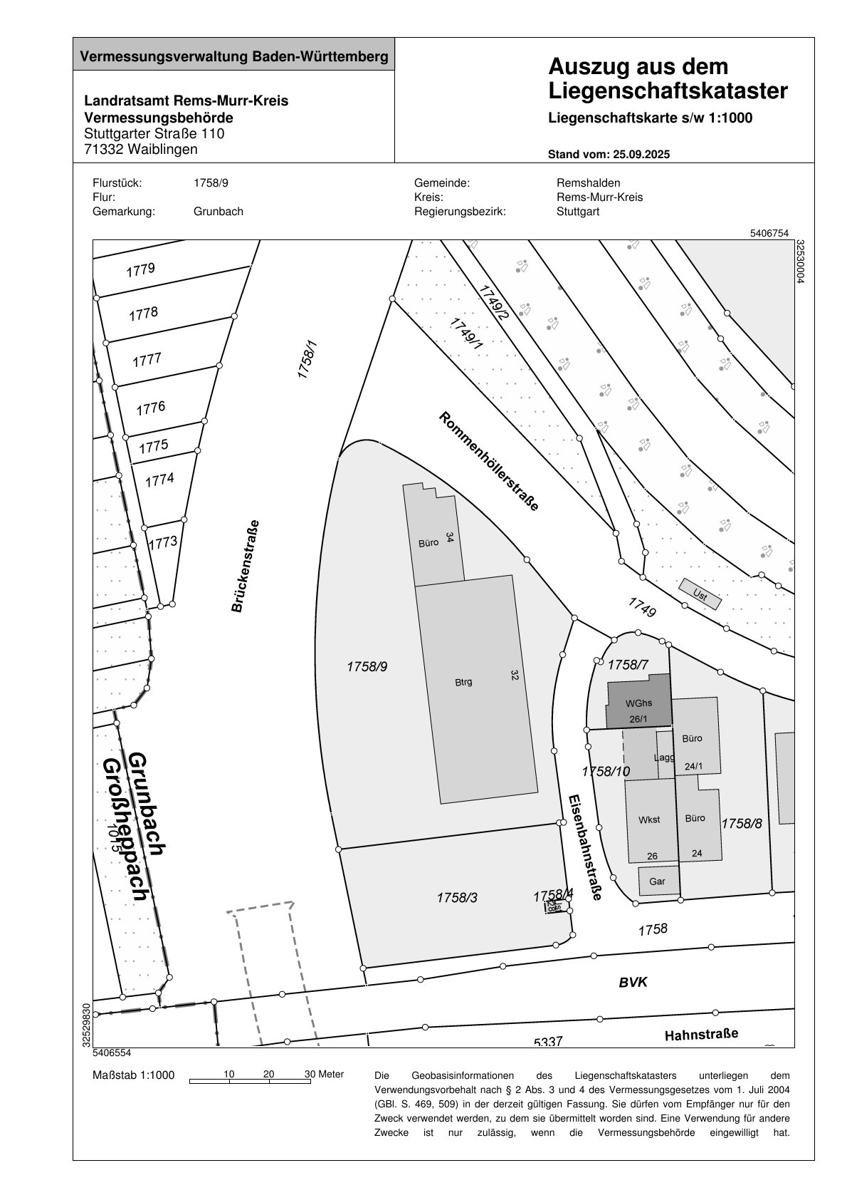 Angaben aus dem Bebauungsplan Gewerbegebiet (beschränkt), Zahl der Vollgeschosse III, Grundflächenzahl GRZ 0,8, Geschossflächenzahl GRZ 2,0, max. Gebäudehöhe 10 m. Lt. dem Bebauungsplan kann die vorhandene Bebauung mindestens verdoppelt werden.