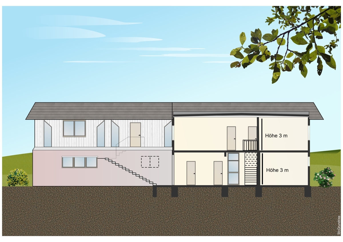 Bautenstand lt. Plänen von 1988, heute in minimalen Details verändert, daher bestehen geringfügige Abweichungen zwischen den Plänen im Baugesuch und dem tatsächlichen Bestand, die aber nicht relevant sind.