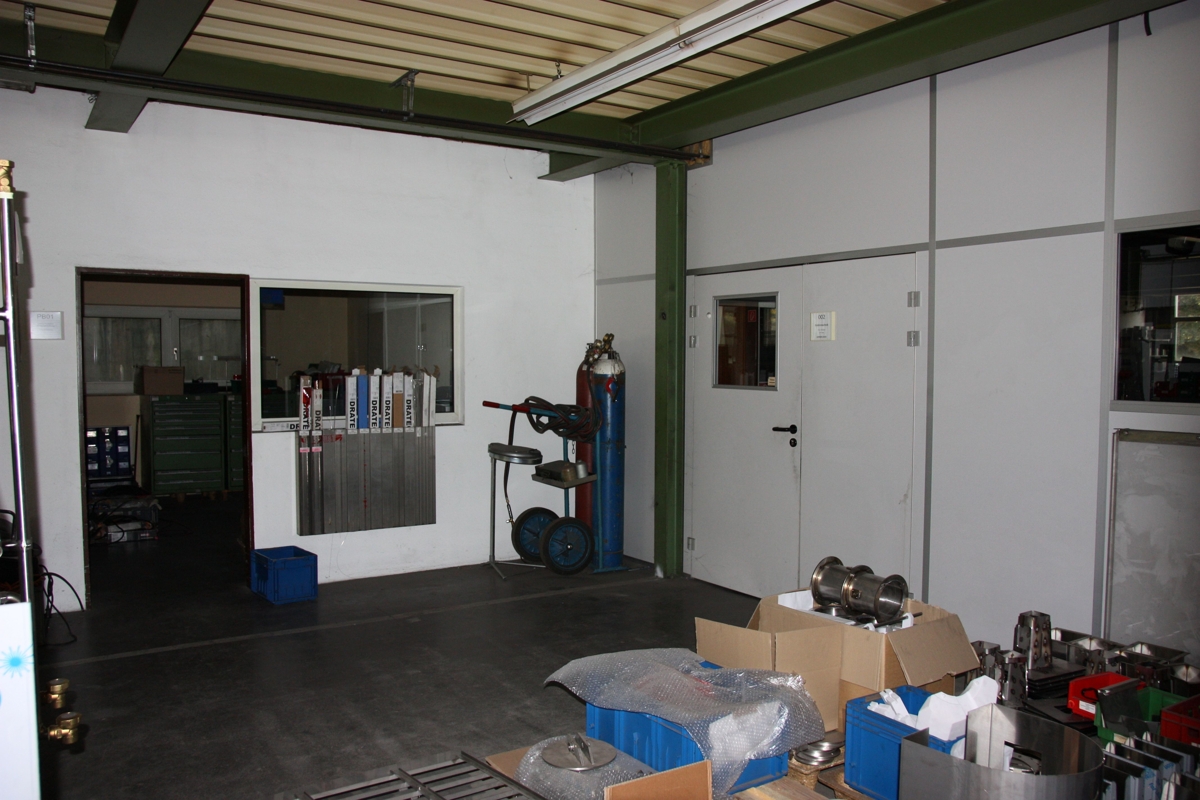 Inneneinbauten: ein Meisterbüro, ein abschließbares Teilelager über einem Teil der Halle wurde ein Zwischengeschoss eingezogen. Dunkelstrahlerheizung mit Gas betrieben.