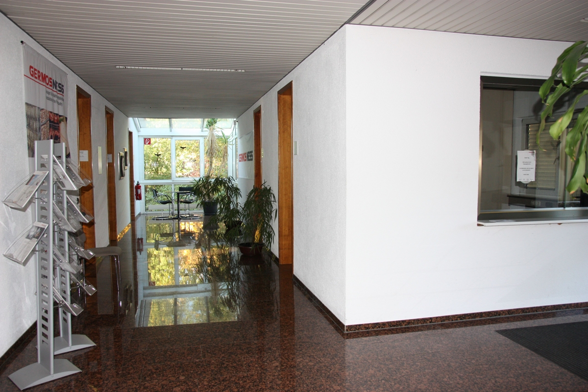 Die technische Ausstattung und die Raumausstattung kommen teilweise aus dem Baujahr, teilweise wurde diese Ausstattung erneuert. Teilweise Granitböden, ansonsten Teppichböden und Fliesen, Türrahmen mit Lichtelementen bis zur Decke, Wände teilweise mit Rauputz versehen, sonst Tapeten, teilweise abgehängte Decken mit integrierter Beleuchtung, Strom- und EDV-Verkabelung in Brüstungskanälen, Glasfaseranschluss im Haus. Toiletten, Teeküche, Kantinenraum in gutem Standard vorhanden.