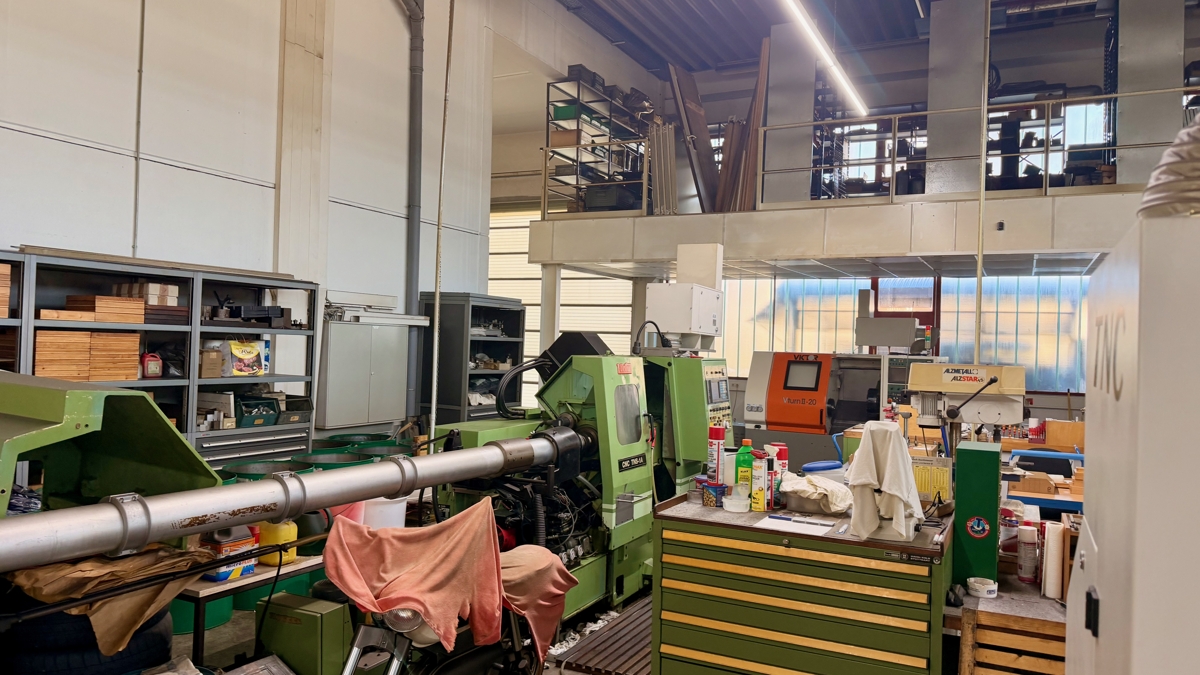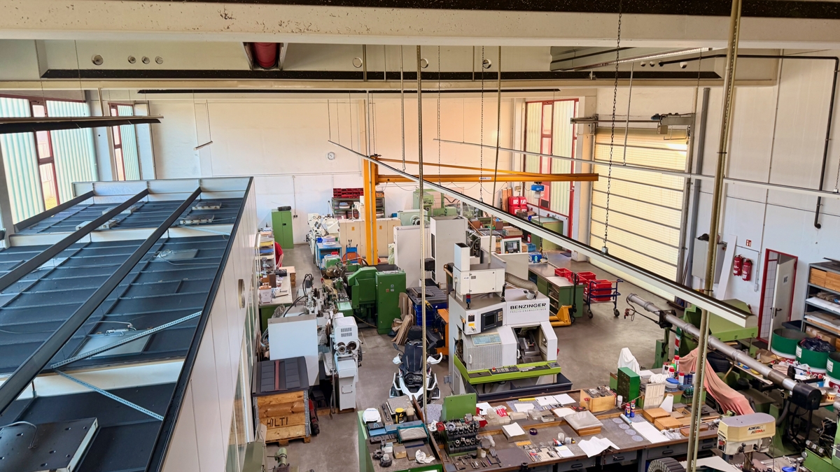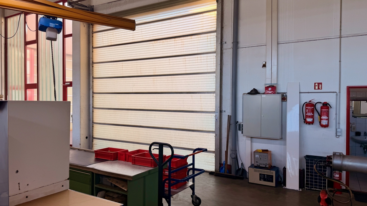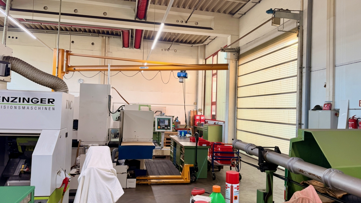 Produktionshalle Teilabschnitt ca. 220 m2., seitlich Meisterbüro, Werkstatt, zusätzlich