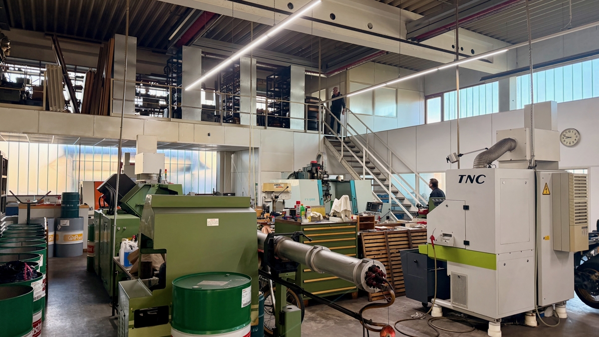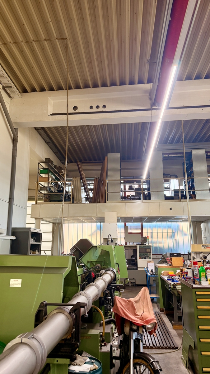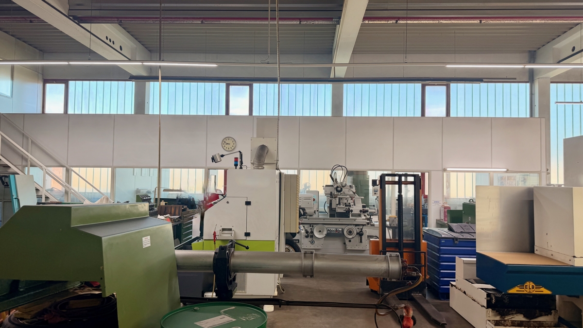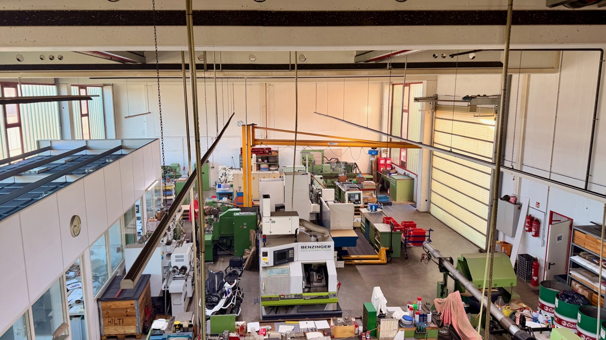 Produktionshalle Teilabschnitt ca. 220 m2., seitlich Meisterbüro, Werkstatt, zusätzlich